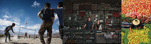 銀獎作品則呈現(xiàn)出更廣闊的地理與文化視角。《帕爾米高原的足球少年》捕捉高原上少年馳騁的動感瞬間,展現(xiàn)堅韌生命力;《鄉(xiāng)村供銷社》以紀實質感還原鄉(xiāng)村生活場景,傳遞時代變遷中的人情溫度;《豐收的蘋果攤》則以飽滿色彩與構圖,渲染出農產品豐收的喜悅氛圍。三者共同構建起從高原到村落、從個體到群體的影像敘事譜系。