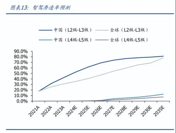 保守估計到2030年前,L2級以上滲透率將超過80%,其中L3+或超過20%。