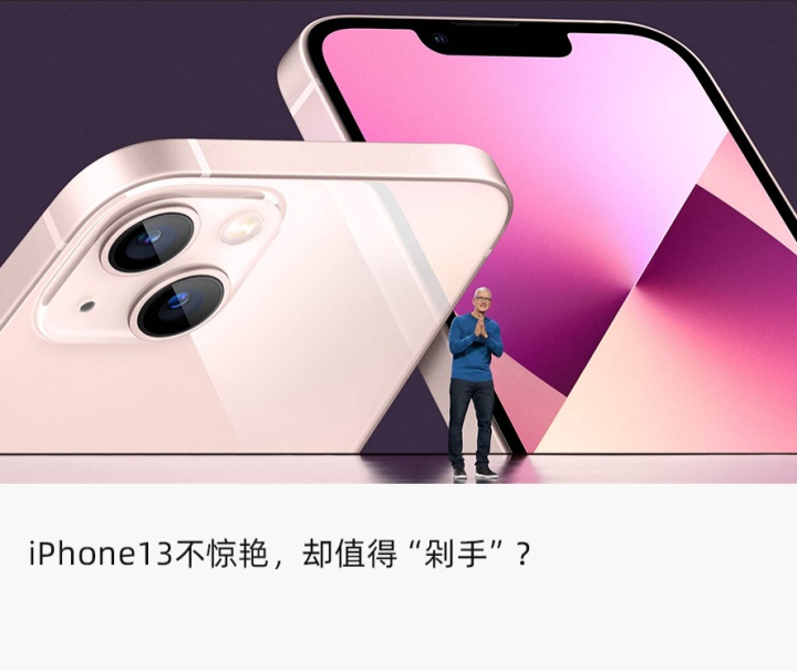 “iPhone 13 采用5nm 的A15芯片、OLED屏、1200萬主攝、128G存儲起步,799美元起,加量還減價,蘋果將繼續做價格厚道,感動人心的好產品。”