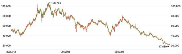 ▲(李寧近三年股價走勢。來源/同花順)