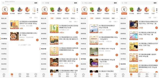 在選品的數量和品類上,東方甄選從開播到結束共上架了281件商品,除了農產品和美食外,還包括生活用品如四件套、保溫杯;大家電如冰箱、洗衣機;美妝護膚如海藍之謎、嬌韻詩;珠寶如珍珠、黃金飾品;3C數碼如華為平板;旅游產品如大理、廈門的酒店套餐、虛擬優惠卡券如麥當勞單次券等數十種品類。