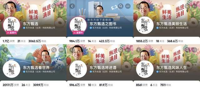 目前,東方甄選在抖音已有包括東方甄選、東方甄選自營商品、東方甄選看世界、東方甄選美麗生活、東方甄選將進酒、東方甄選之圖書六個賬號組成的直播矩陣。自營產品用于起量;美妝、生鮮、酒水作為電商的優勢品類用于擴容拉新;圖書作為特色品類主打差異化和高壁壘。