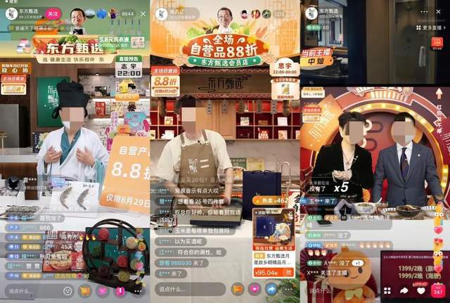 從左到右分別為 東方甄選抖音直播間 獨立APP直播間和淘寶直播間