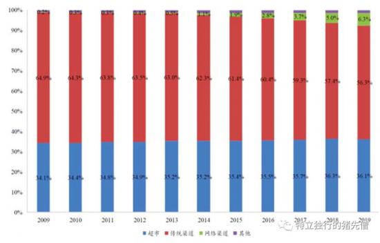 那么,生鮮電商市場到底有多大呢?從2019年的數據來看,生鮮銷售渠道的絕對大頭仍然是農貿市場,占比56%,其次是超市,占比36%,兩者合計占據了整個市場的92%,生鮮電商的占比僅占其中的6%。