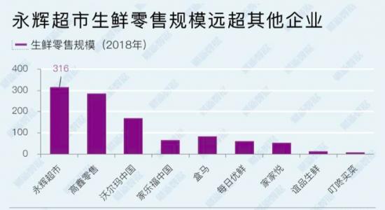 永輝的生鮮零售規模遠超其他超市,不論是大潤發(高鑫零售)還是沃爾瑪,在生鮮零售領域都要落后于永輝。生鮮成為了永輝的最大記憶點。