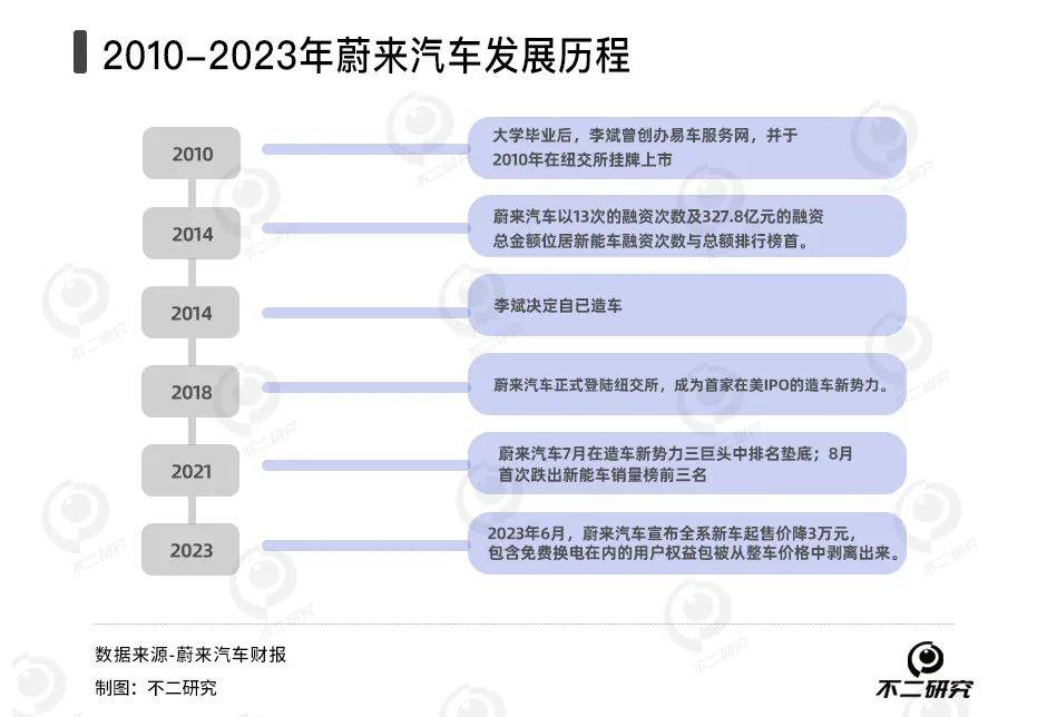 從手機(jī)、芯片到電池、充換電站、車險(xiǎn)等領(lǐng)域,蔚來自身也波折不斷。2023年以來,蔚來首次降價(jià),以及采取裁員、開放換電、放棄電池制造等一系列降本增效的措施,使其置于輿論的風(fēng)口浪尖。