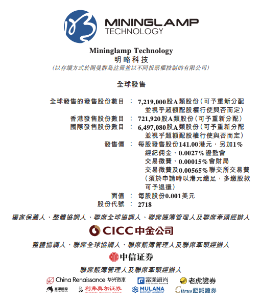【TechWeb】10月23日消息,明略科技將于香港聯(lián)交所主板上市,股份代號2718。本次全球發(fā)售共計7,219,000股A類股份,其中約10%用于香港公開發(fā)售,約90%用于國際發(fā)售。發(fā)售價定為每股141.00港元,每手買賣單位為40股,入場費約5,696.88港元。