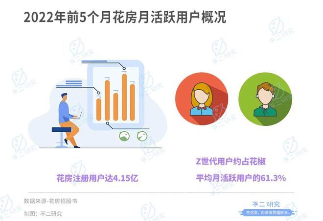 根據花房招股書顯示:截至2022年5月31日,花房有4.15億名注冊用戶;其中,Z世代用戶約占花椒平均月活躍用戶的61.3%。