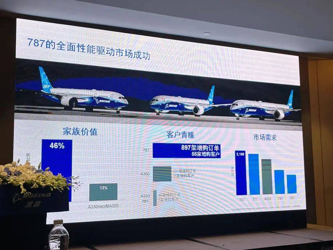 在寬體機方面,中國市場對于寬體機有巨大的需求,目前已經有100多架787在服務中國市場。
