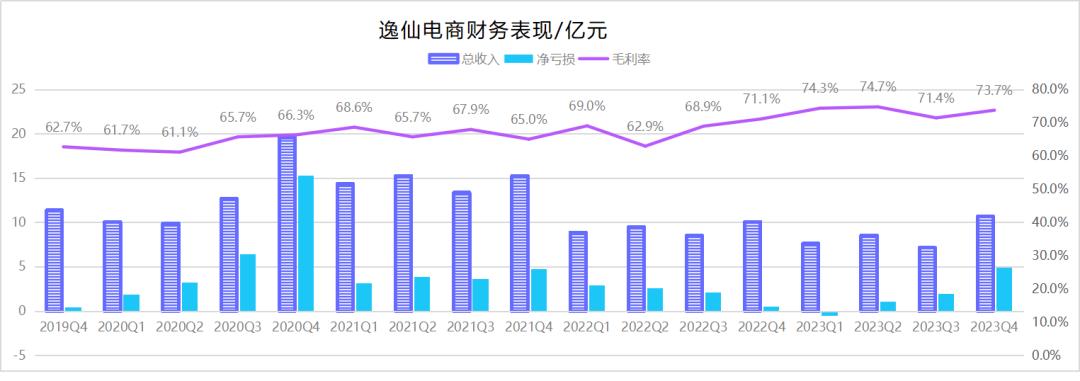 逸仙電商最有望扭虧為盈的轉折點出現在2022Q4季度,虧損幅度收窄至5.5%,是彼時上市以來的最小虧損幅度,其毛利率也首次來到70%以上。后來的2023Q1逸仙也不出意外地實現了正向凈收入,并且持續保持著70%以上的毛利率。