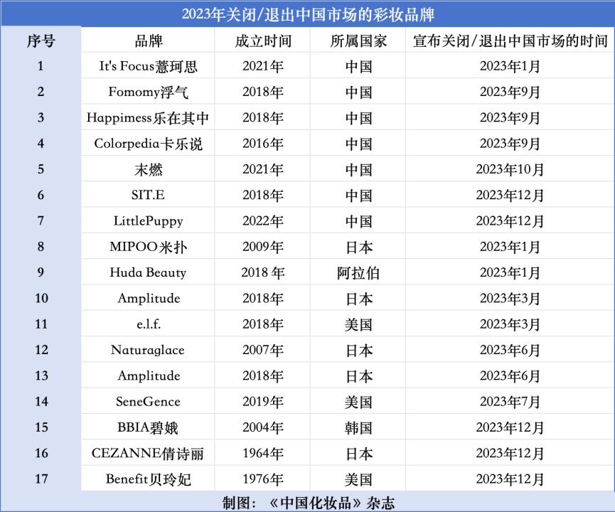 根據《中國化妝品》雜志整理,2023年關閉的中國美妝品牌有7家,其中6家都是在9月份“哪里貴了”事件后關閉的。