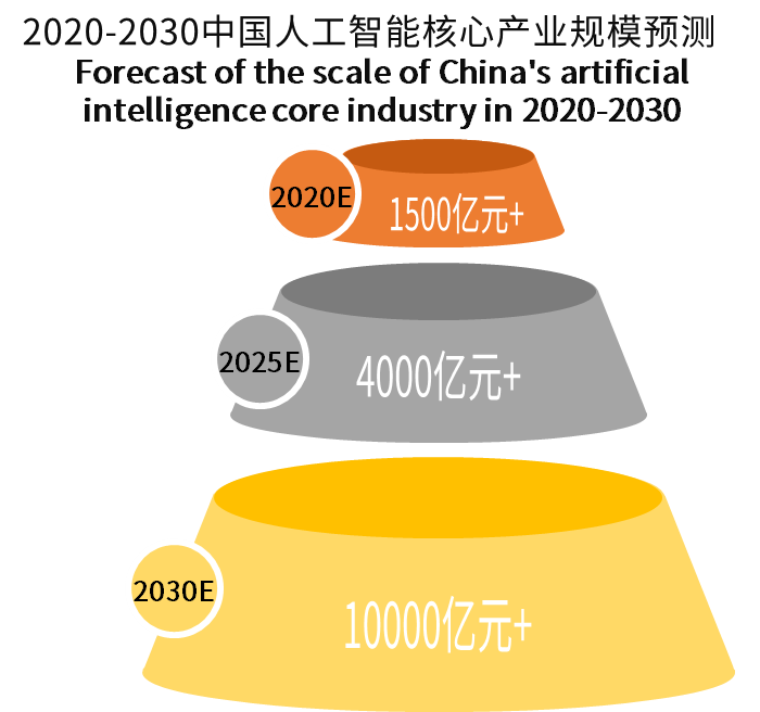 2019年中國人工智能處于試點(diǎn)階段,正向推廣階段穩(wěn)步邁進(jìn)。一方面,政策利好和科研熱度持續(xù)驅(qū)動人工智能高速發(fā)展;另一方面,傳統(tǒng)行業(yè)與人工智能技術(shù)融合加深,推動人工智能產(chǎn)業(yè)規(guī)模爆發(fā)性增長。預(yù)計(jì)2030年中國人工智能核心產(chǎn)業(yè)規(guī)模將突破10000億元。