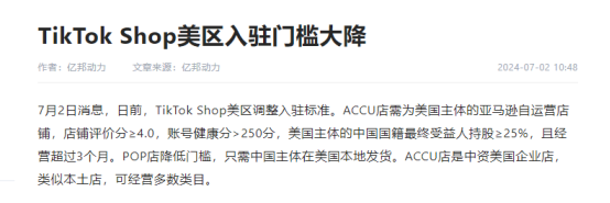 但對于TikTok來說,此前印尼突然的封禁,北美的禁令和官司還沒個結果,小心一點變得不難理解。第一, TikTok 將約 2% 的信息流內容劃給了電商,這一比例在東南亞是10%。第二,TikTok Shop 在美國本土店的審核門檻依然很高,商家需有美國社保賬號等或在亞馬遜年交易額大于 200 萬美元,雖然7月份取消了這個門檻,但入駐門檻還是遠遠高于Temu。