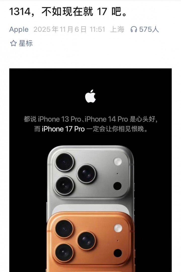 蘋果在文中表示,都說iPhone 13 Pro、iPhone 14 Pro是心頭好,而iPhone 17 Pro一定會讓你相見恨晚。