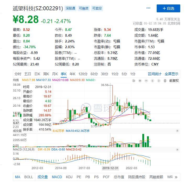 作為最早精準布局明星直播的MCN機構之一,遙望科技旗下網羅了張柏芝、穎兒、辰亦儒、張予曦、賈乃亮、黃奕等超過40位知名明星藝人,吃盡了紅利,2019年底至2020年初,遙望科技甚至在25個交易日內狂攬16個漲停,股價暴漲約400%。