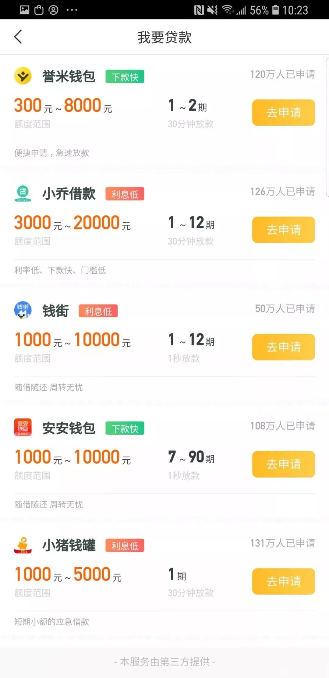 該貸款超市中現(xiàn)金貸產(chǎn)品額度普遍在2000-8000元左右,借款期限為1-2個(gè)月左右。每款產(chǎn)品旁邊都會(huì)顯示已有上百萬(wàn)人申請(qǐng)。