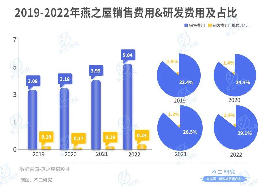 在「不二研究」看來,作為燕窩行業的26年老兵,燕之屋營收業績可觀,但高額的銷售開支與低企的研發支出形成鮮明對比。