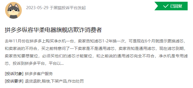 在黑貓投訴上,有關(guān)凈水器產(chǎn)品的投訴高達5000多條,更是超過電飯煲、油煙機等廚電產(chǎn)品,其中又以售后不到位最為明顯。