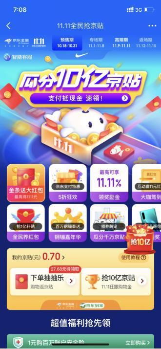 京東金融發10億“京貼” 助力全民狂歡11.11金融