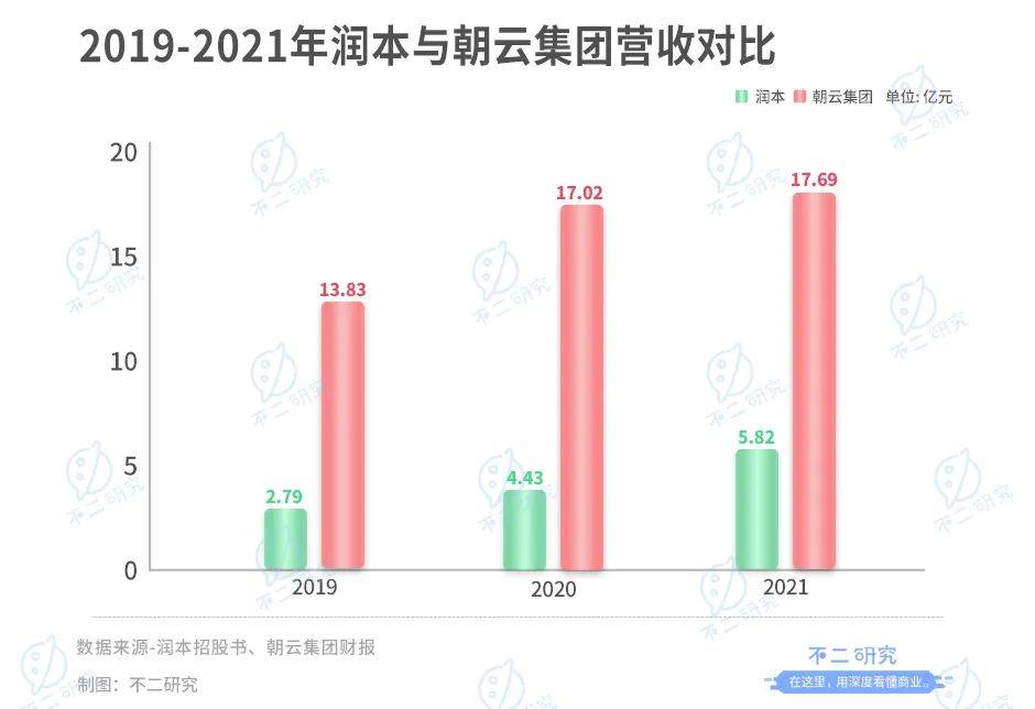 與同行朝云集團相比,潤本的營收體量并不大。根據(jù)財報,朝云集團2019年-2021年營收分別為13.83億、17.02億和17.69億元,遠高于潤本。