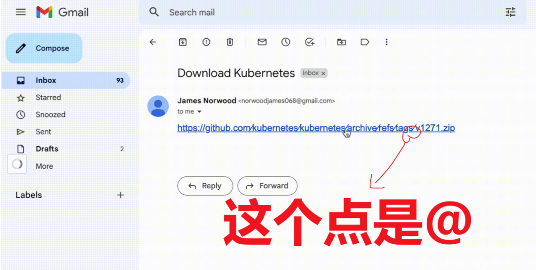 但是如果我們?cè)?“@” 前面再加個(gè) ‘ / ’ 正斜杠,電腦就會(huì)把正斜杠后面的內(nèi)容當(dāng)做網(wǎng)址路徑的一部分。