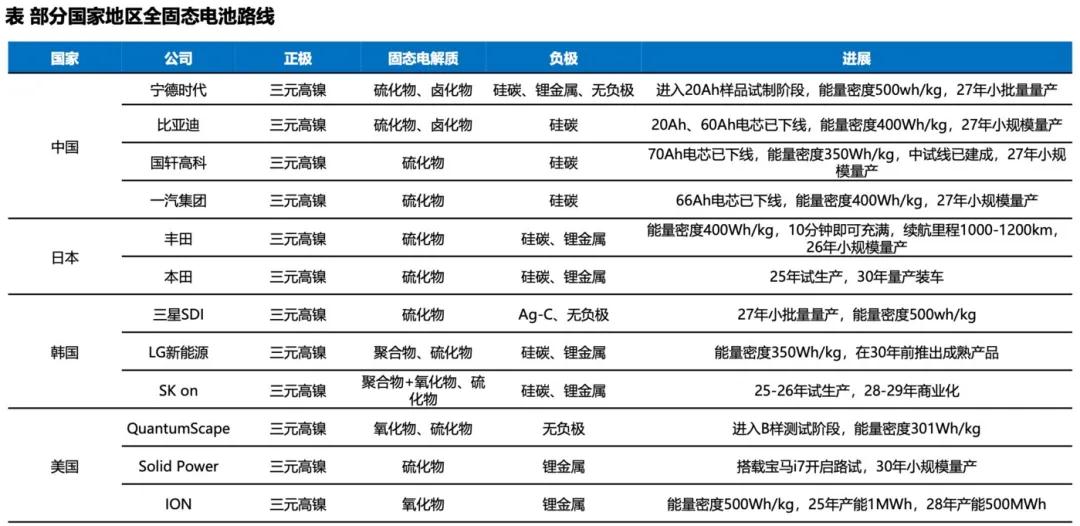 目前來看,國內寧德時代、比亞迪、華為,日本的豐田、松下,韓國的三星SDI、 LG新能源、SK on,美國的Solid Power等均重點布局硫化物體系。