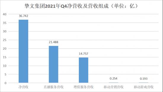 據(jù)悉,得益于陌陌主APP虛擬禮物業(yè)務(wù)的持續(xù)增長以及引進(jìn)多重付費(fèi)方案后,摯文集團(tuán)在產(chǎn)品和運(yùn)營方面的創(chuàng)新,2021年第四季度,摯文集團(tuán)凈營收達(dá)36.742億元,其中,直播服務(wù)營收為21.488億元,增值服務(wù)營收達(dá)14.757億元,均較去年同比上漲,營收結(jié)構(gòu)也得到了進(jìn)一步的優(yōu)化。