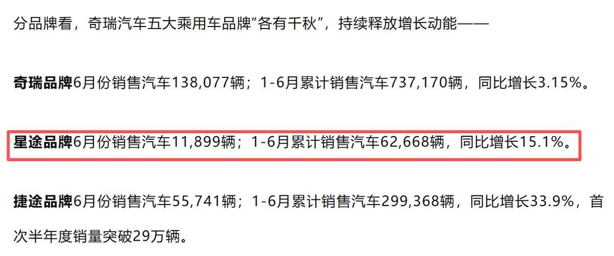 但奇瑞集團6月銷售快報卻稱上半年累計銷售62668輛,還實現了15.1%的增長,兩者差距高達11760輛。若按實際累計銷量計算,上半年銷量較2024年同期還下滑了6.5%。