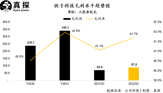 就這樣,快手的三大收入板塊的結(jié)構(gòu)正在不斷優(yōu)化,本季度快手的毛利潤為87.8億元,同比增長25.7%,毛利率相較去年同期改善0.6%。