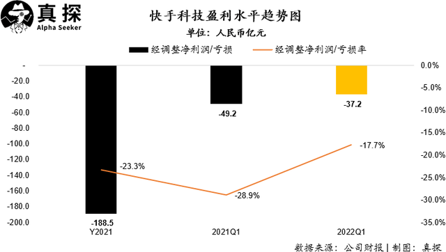 同時,快手Q1經(jīng)調(diào)整凈虧損同比收窄34.1%至37.2億元,經(jīng)調(diào)整凈虧損率同比改善超15個百分點,這也回應(yīng)了此前市場上關(guān)于快手效率的疑問。