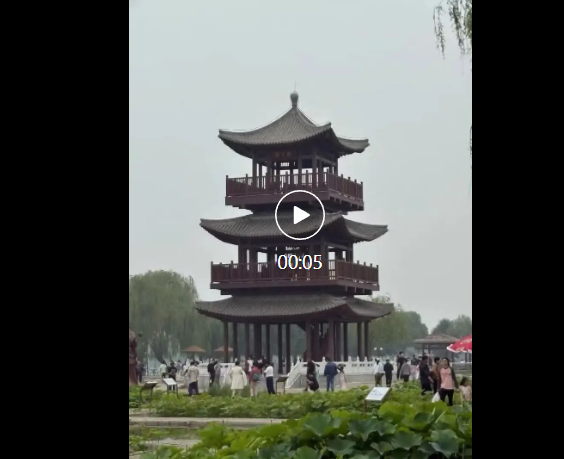 輸入視頻描述:微風吹拂,荷葉擺動,鏡頭轉過,人群熙熙攘攘。并選擇了提示詞庫中的“鏡頭拉近”。