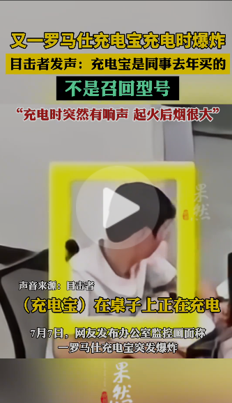 據報道,一名網友在辦公室監控視頻中發現,一個非召回型號的羅馬仕充電寶在充電時突然爆炸并起火冒煙。目擊者稱,該充電寶是同事去年購買的,在充電時突然發出響聲并迅速起火,產生了大量煙霧。