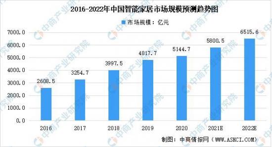 早些年,智能家居在外界眼中僅是“概念”。確實(shí),受技術(shù)制約,彼時(shí)市場尚未成型,開發(fā)者寥寥無幾。可現(xiàn)在呢?中國已是全球最大的智能家居市場消費(fèi)國,2016-2020年市場規(guī)模由2608.5億元增至5144.7億元,年均復(fù)合增長率為18.51%。中商產(chǎn)業(yè)研究院預(yù)測,2022年市場規(guī)模可達(dá)6515.6億元。