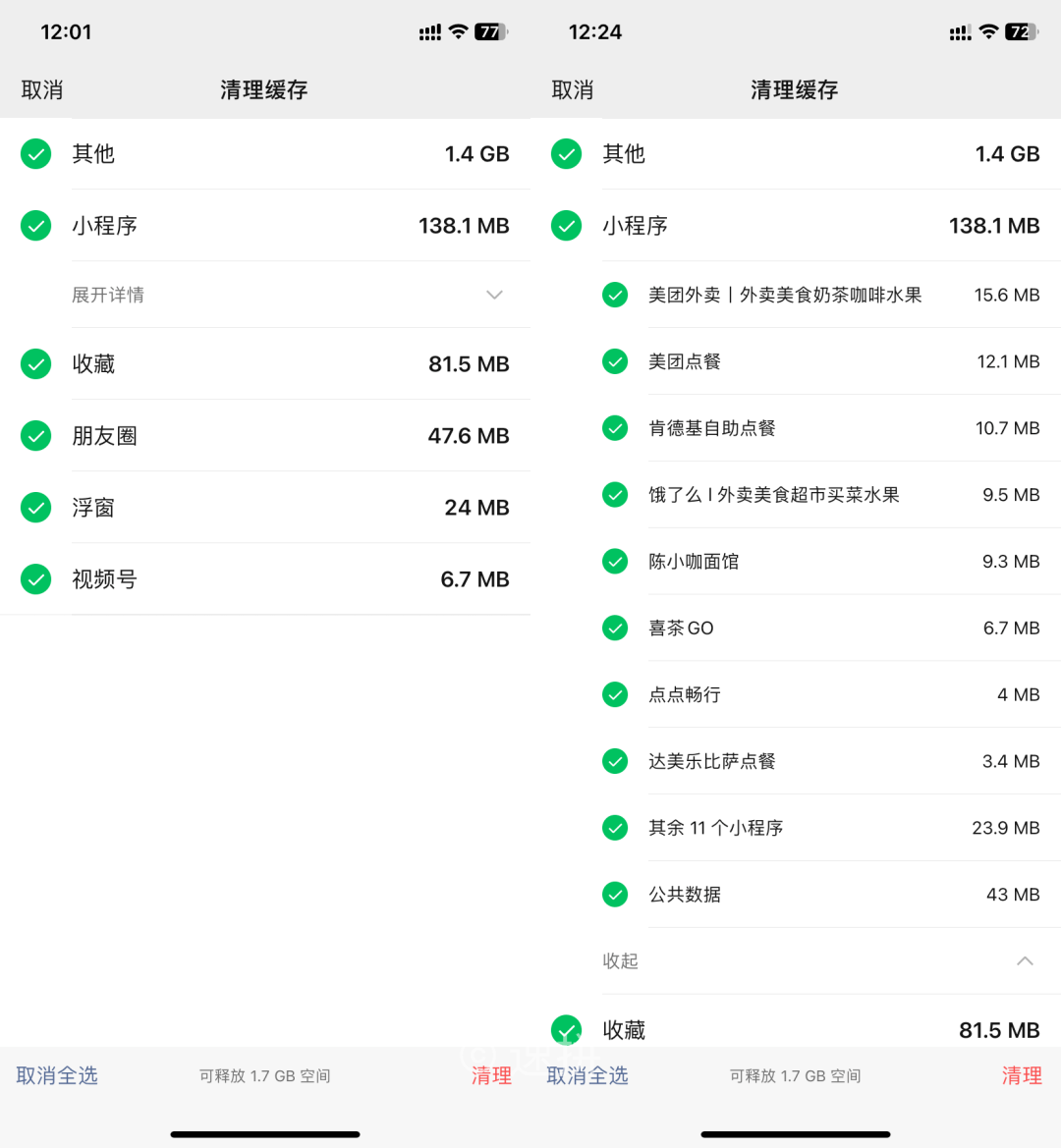 小程序的緩存清理,甚至還能具體到哪一個小程序。。。