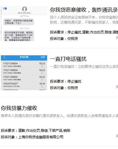 暴力催收是全行業的普遍問題,你我貸也不例外,這方面的投訴相當多。