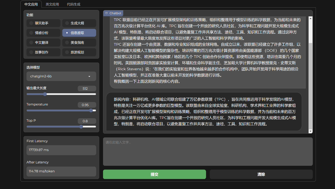 小編在這臺華碩破曉 Air 上裝好英特爾推出的大語言模型 Demo。這個 Demo 集成了三個大語言模型,包括 ChatGLM2、LLaMA2 和 StarCoder。它們均通過英特爾的語料庫進行了優化。