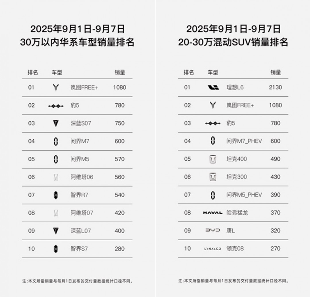 【TechWeb】9月9日消息,2025年8月20-30萬元中大型SUV銷量成績單出爐:嵐圖FREE+以 5,239輛 的月銷成績,強勢躋身細分市場Top3;排名前兩位的分別是小米YU7和理想L6。