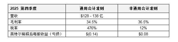 英特爾對2025年第四季度的指導(dǎo)包括以下根據(jù)通用會計(jì)準(zhǔn)則和非通用會計(jì)準(zhǔn)則的預(yù)估: