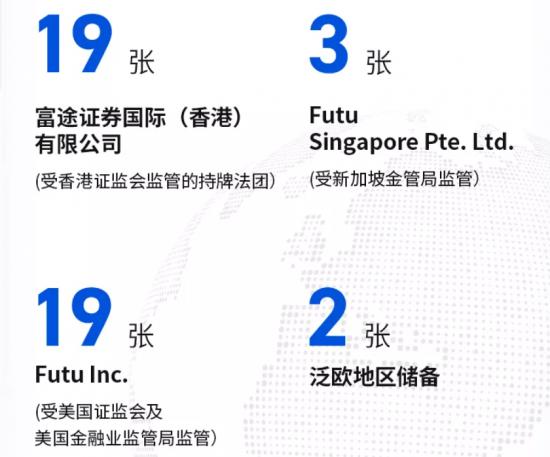 對(duì)于跨境互聯(lián)網(wǎng)券商來(lái)說,金融牌照是核心資產(chǎn),也是全球化布局的第一道“護(hù)城河”。目前,富途控股在香港、美國(guó)、新加坡、歐洲等地積累43張牌照及會(huì)員業(yè)務(wù)資格。