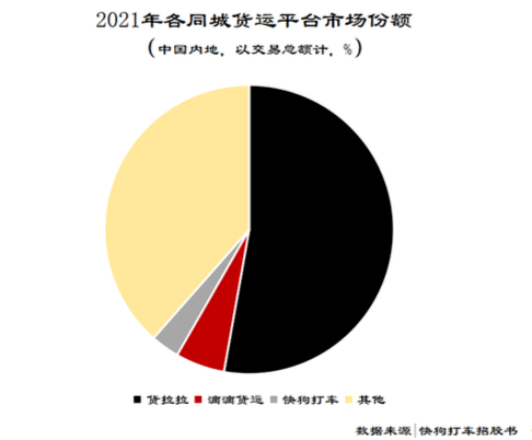 除了貨拉拉,2020年,滴滴貨運在滴滴的支持下成立,并迅速在市場中打開局面,在2021年,滴滴貨運的市場份額就已經反超快狗打車,成為行業第二。滴滴貨運在這一年半時間取得的成績,就超過了快狗打車近七年的積累,也是扎心了。