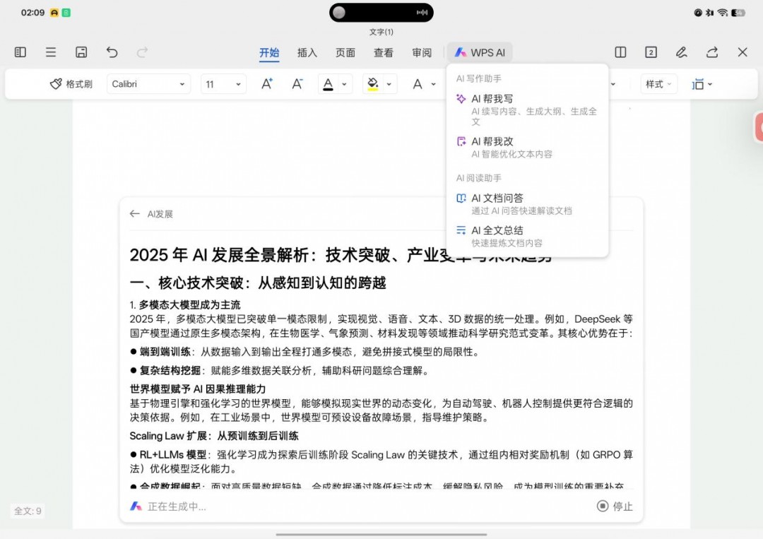 而在辦公場景中,OPPO Pad 5內置的PC級WPS支持一鍵生成PPT、文案、表格和思維導圖等功能。用戶只需喚起鍵盤,點擊左上角的“彩色鉛筆”圖標,即可快速生成各類文檔。這一功能不僅適用于學生用戶,對于職場人士來說也極為實用,能夠大大提高工作效率。