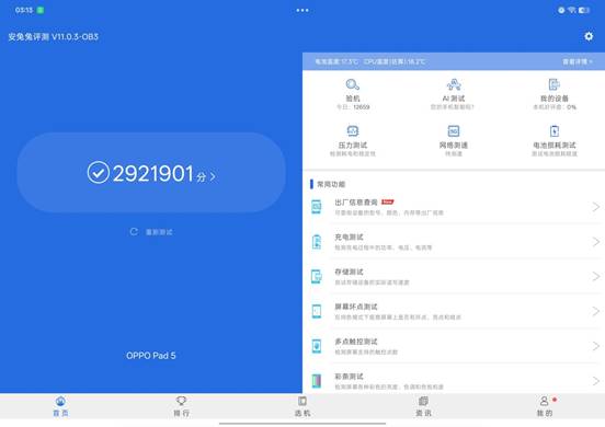 在安兔兔跑分測試中,OPPO Pad 5輕松達到了292萬分,這一成績在同檔平板中遙遙領先。無論是運行大型游戲還是處理多任務,都能輕松應對,流暢不卡頓。