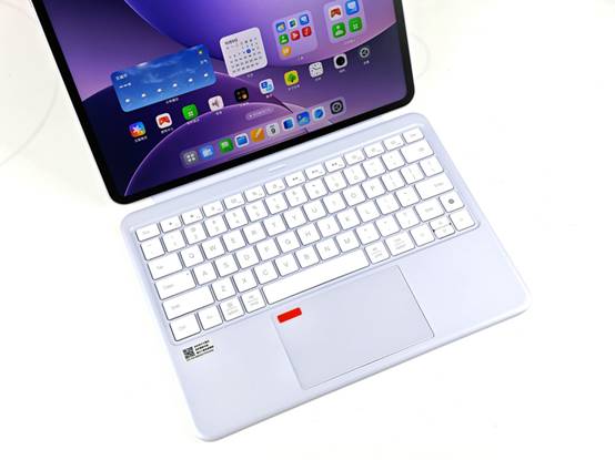 在配件方面,OPPO Pad 5依舊提供有智能觸控鍵盤、智能保護殼和手寫筆等配件可供選購,其中這款幸運紫同色的智能觸控鍵盤,不僅與平板的顏色相匹配,還提供了舒適的打字體驗。鍵盤采用了14.5×14.5的標準鍵帽設計,鍵程達到了1.5mm,打字手感非常舒適。