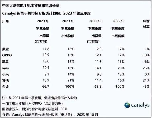 直至第三季度,榮耀這才迎來反轉,如文章開頭所述,市場份額回升至18%,排名更是攀升至中國榜首。
