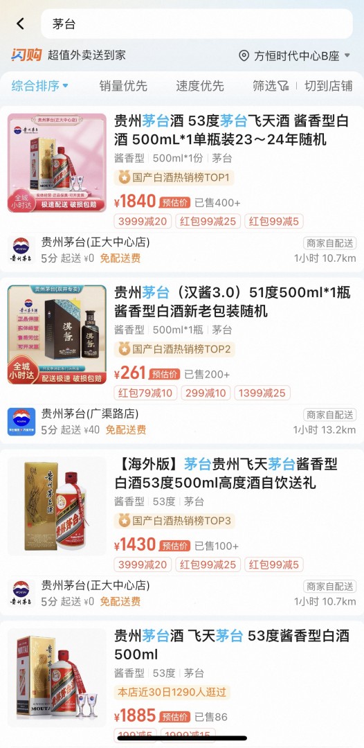 茅臺上線淘寶閃購 超1000家官方門店提供30分鐘送達快訊
