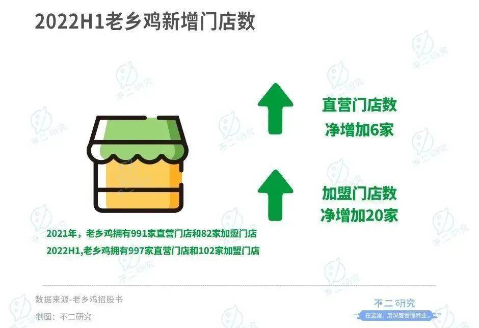 截至2022年6月30日,老鄉雞擁有997家直營門店和102家加盟門店,合計1009家。相比之下,截至2021年12月31日的991家直營門店和82家加盟門店,老鄉雞今年上半年的直營門店數凈增加6家,加盟門店數凈增20家。