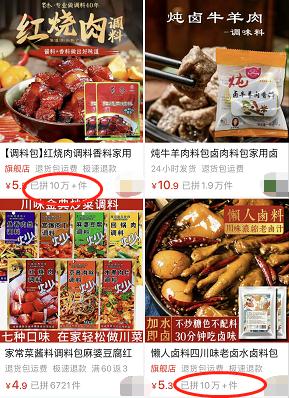 某多多上搜索“懶人調料”,動不動10萬+的拼單,也正透露著賽道的熱火朝天。