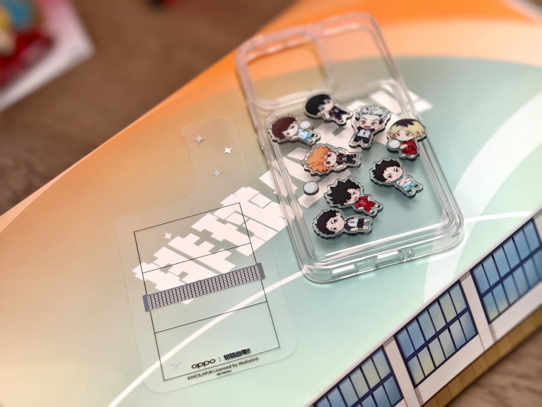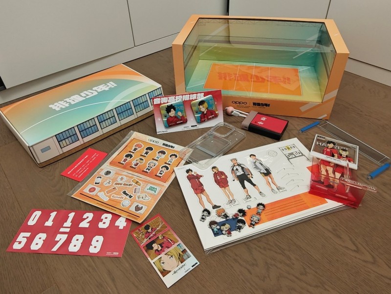 主題禮盒中的物品異常豐富,包括亞克力立牌,貼紙,掛牌,當然,最重要的還是OPPO Reno14的定制手機殼以及音駒學(xué)園的主題充電寶。