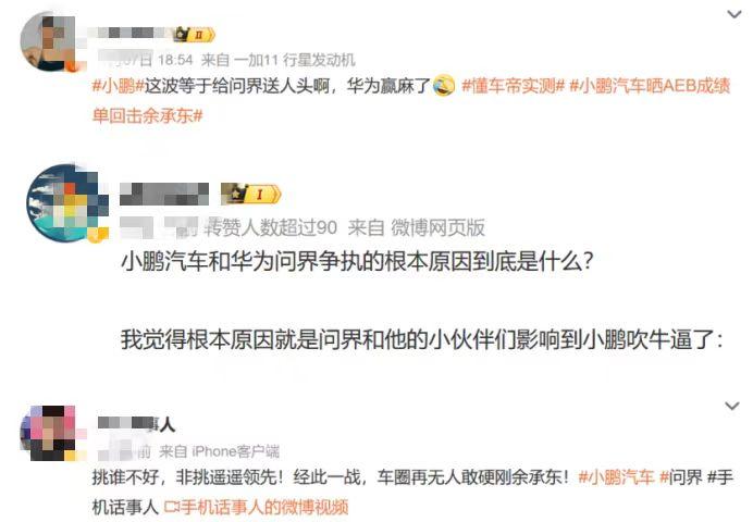 除余承東和何小鵬直接參與”AEB”技術之爭外,存在大部分人在“捧殺”華為的情形。