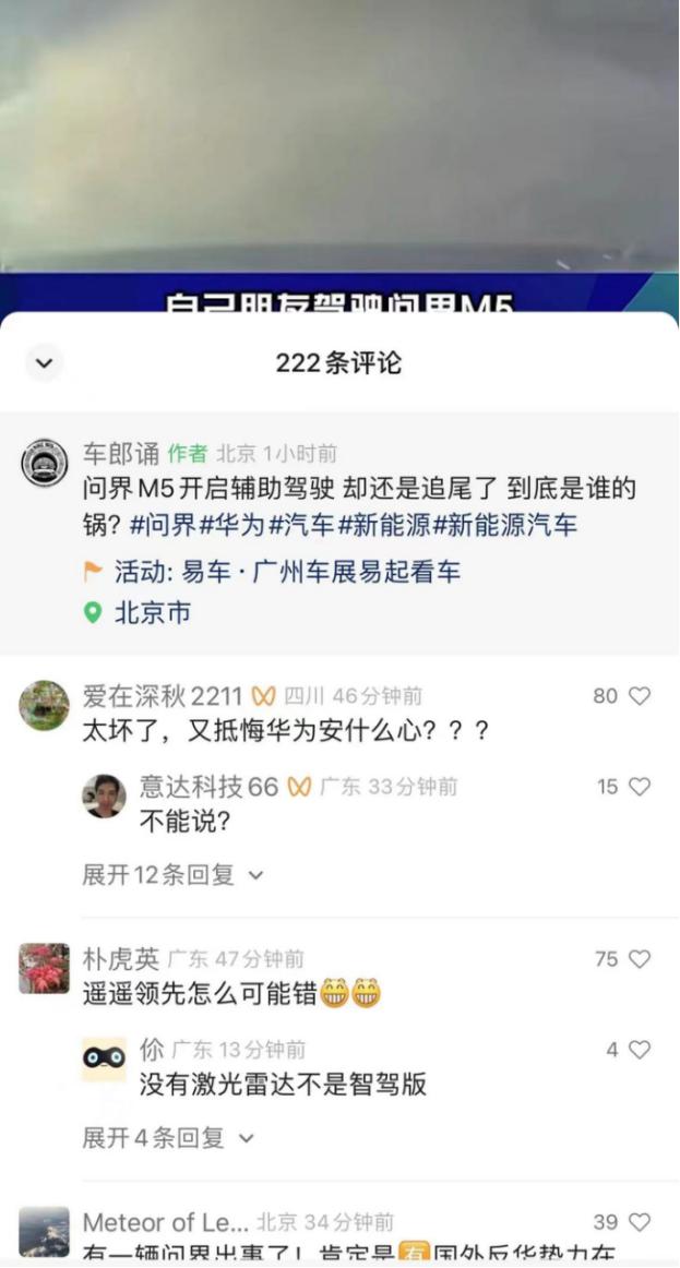 還有一些“民間小視頻”包括自媒體的或者吃瓜群眾的參與?!边@波等于給問界送人頭啊,華為贏麻了“等輿論幾乎刷爆關于此事件的評論區。